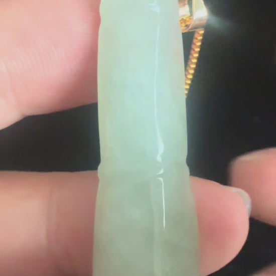 Crafted from natural jadeite, this pendant displays the stone's authentic character through its greenish hue and translucent quality. Natural inclusions and subtle variations affirm its genuine origin, while the bamboo carving showcases skilled artisanship that honors traditional jade-working techniques.