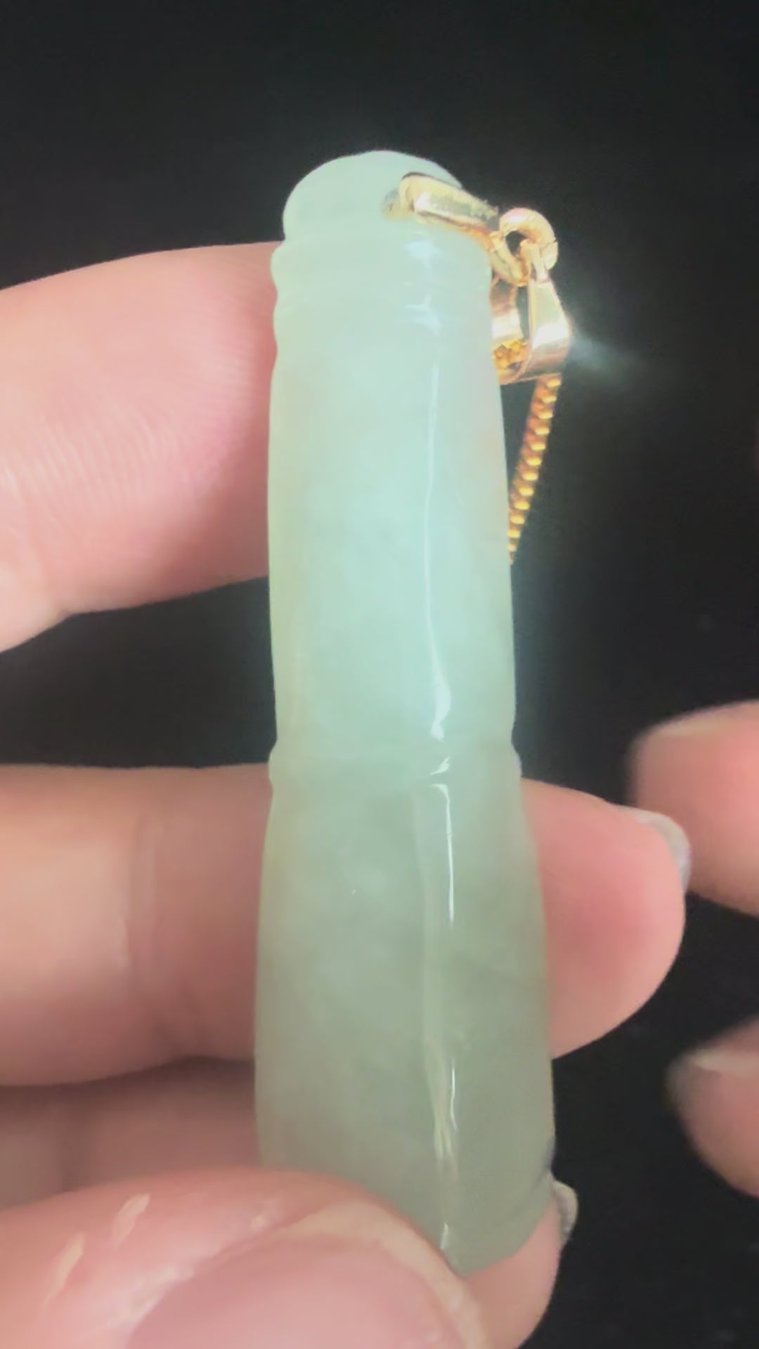 Embrace the spirit of growth and resilience with this Jadeite Bamboo Pendant, carved from greenish translucent jadeite that captures light with gentle luminosity. The bamboo motif is deeply symbolic in Chinese culture, representing upward momentum, flexibility in adversity, and the steady climb toward elevated success.