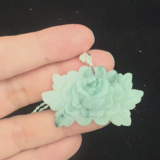 Embrace prosperity and honor with this Jadeite Peony Flower Pendant, carved from light green jadeite that radiates fresh, luminous beauty. Delicate traces of floating flowers drift through the stone like whispers of color, adding natural artistry and depth to this symbol of wealth, romance, and noble grace.