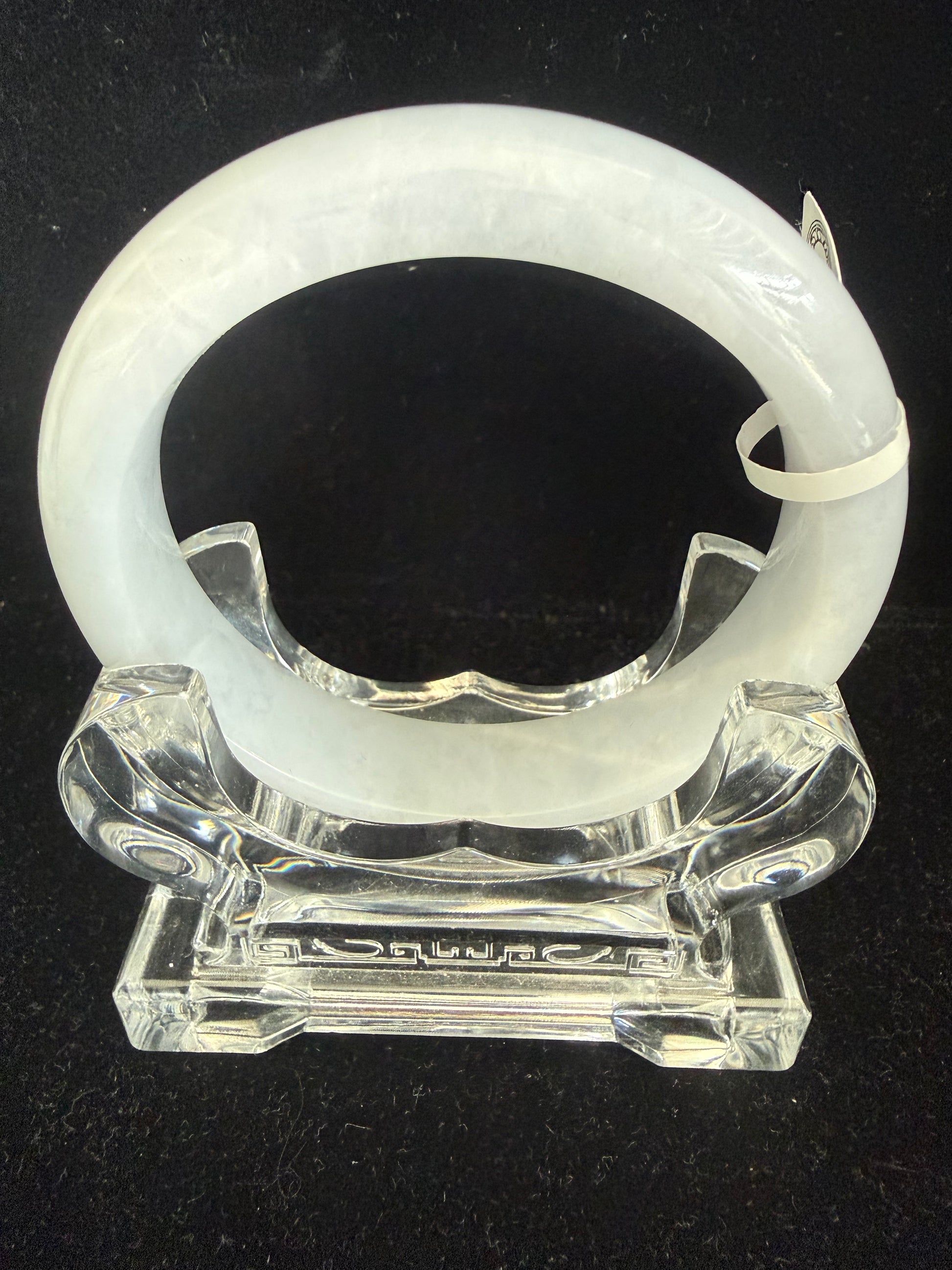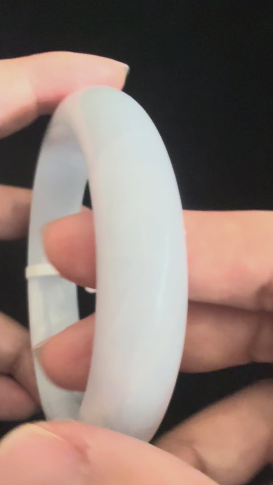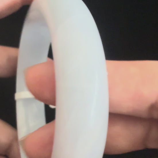 This jadeite bangle is crafted in a light lavender tone all around, radiating a soft and graceful charm. Its surface reveals natural stone lines, a hallmark of genuine jadeite, adding depth and character to the piece. With its clean appearance and refined polish, the bangle exudes an elegant simplicity, making it a timeless accessory that highlights jade’s natural beauty.