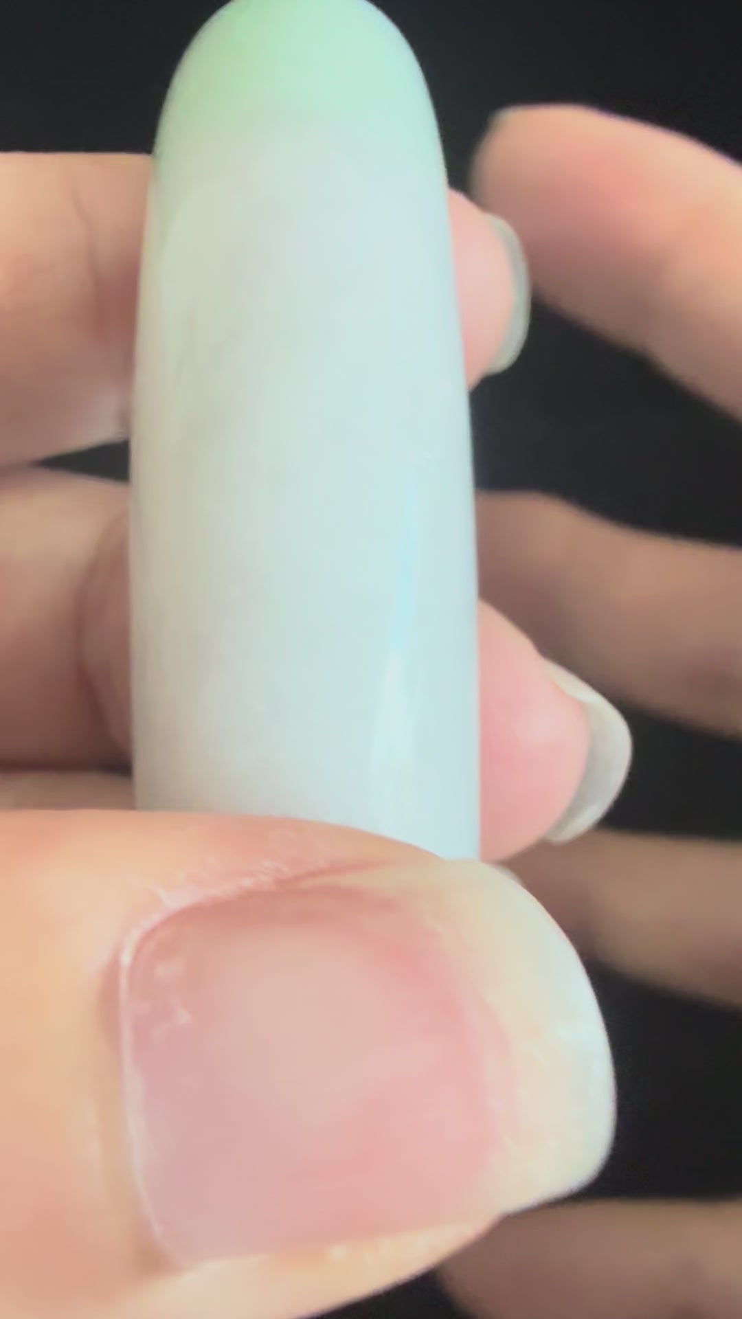 This larger jadeite bangle displays a serene blend of light green and soft lavender tones, with natural stone lines that reflect its authentic formation. A gentle dent pit can be felt on the surface, arising naturally from the stone’s structure and the polishing process. These details highlight the individuality of the piece, making it a distinctive accessory that celebrates jade’s natural beauty and craftsmanship.