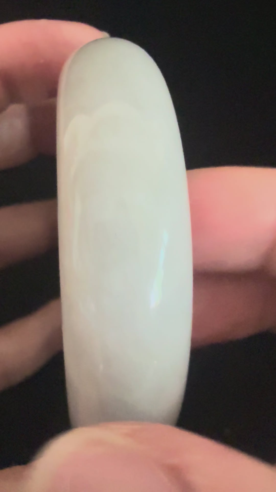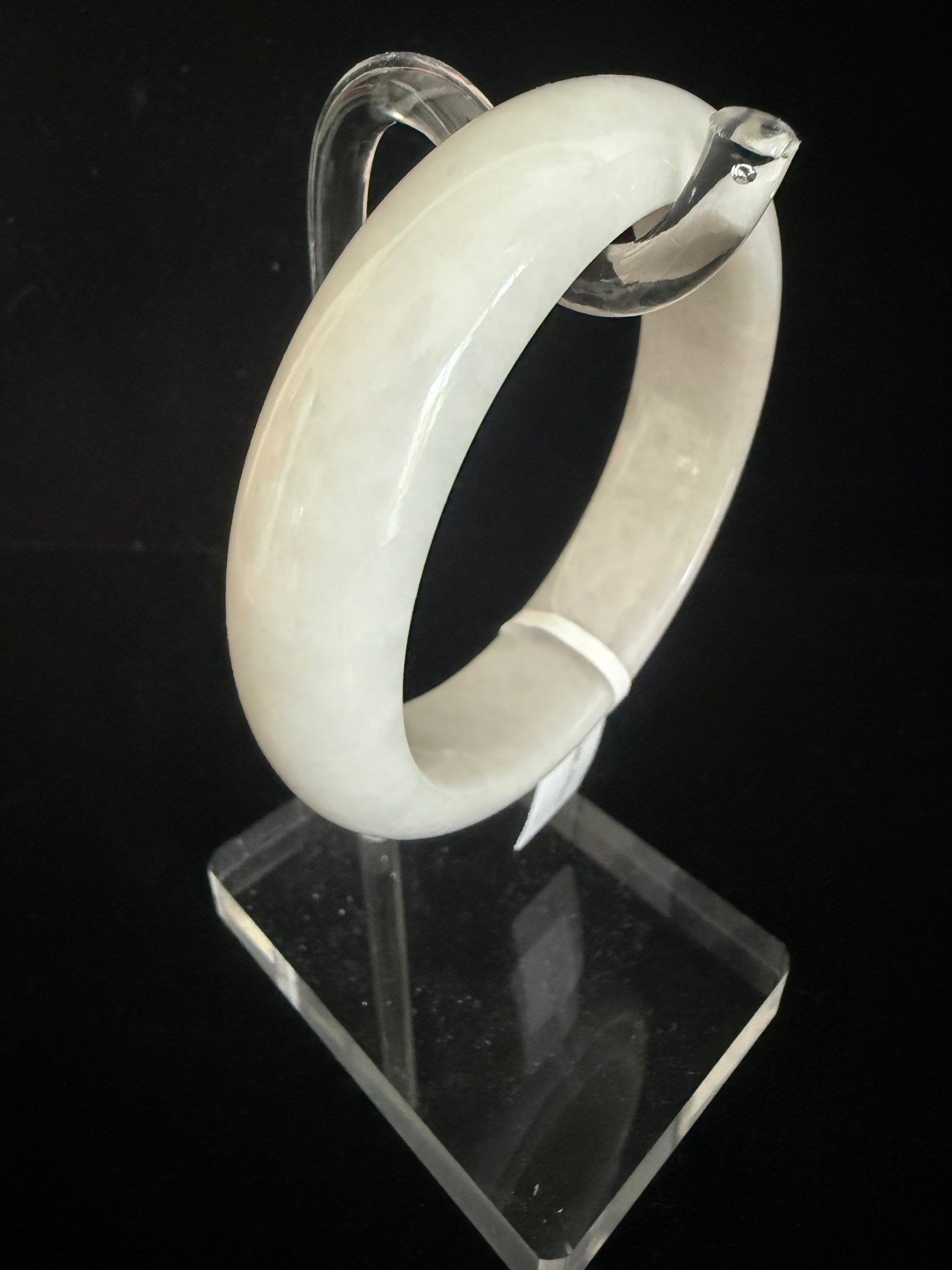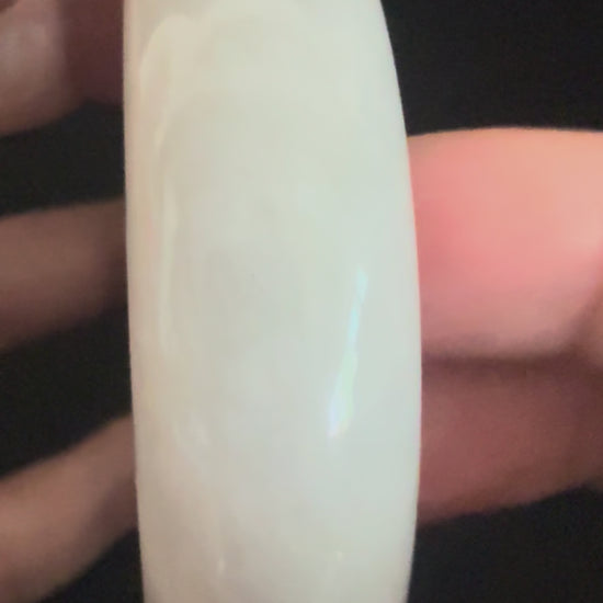 A striking jadeite bangle in a uniform light yam color, radiating warmth and earthy elegance. Its consistent tone highlights the stone’s natural beauty, with a smooth polished finish that feels comfortable against the skin. The even coloration makes this piece especially rare and refined, symbolizing stability, harmony, and grounded strength.