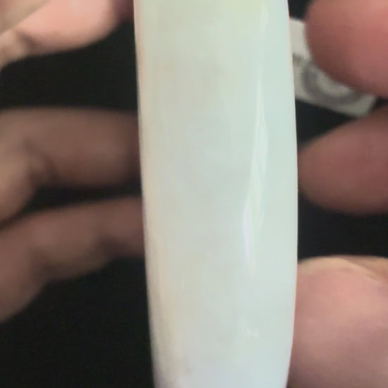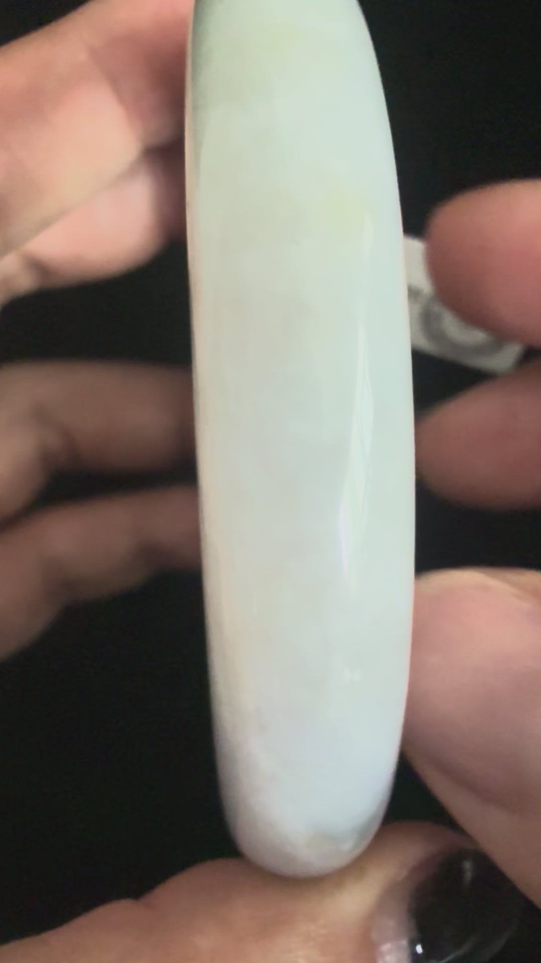 This translucent bangle carries a serene elegance, with natural lines gently visible across its surface, adding character and authenticity to the piece. Its smooth gradient flows from a soft glass‑green hue into a muted grey, creating a harmonious transition that feels both organic and refined. The polished finish enhances its clarity and depth, making it a versatile accessory that reflects light beautifully while retaining a calm, understated charm.