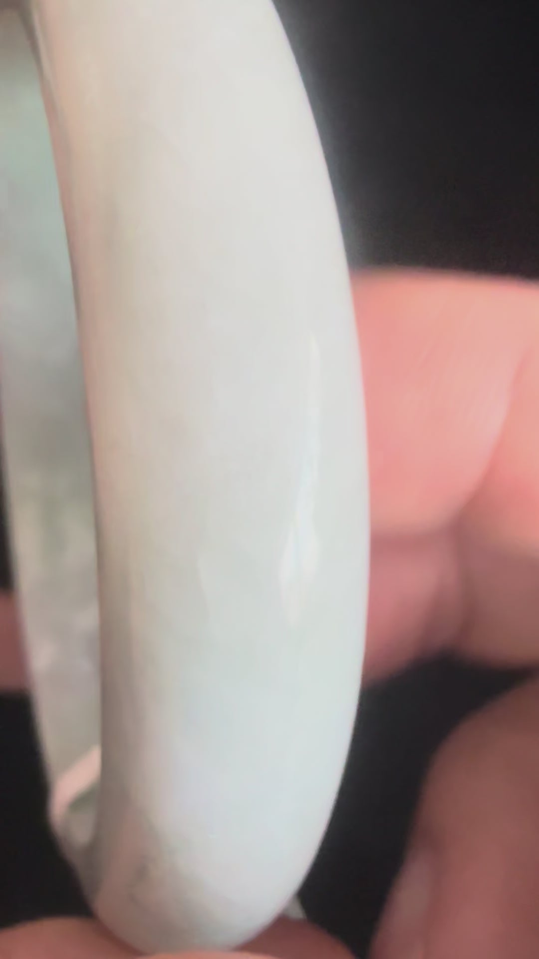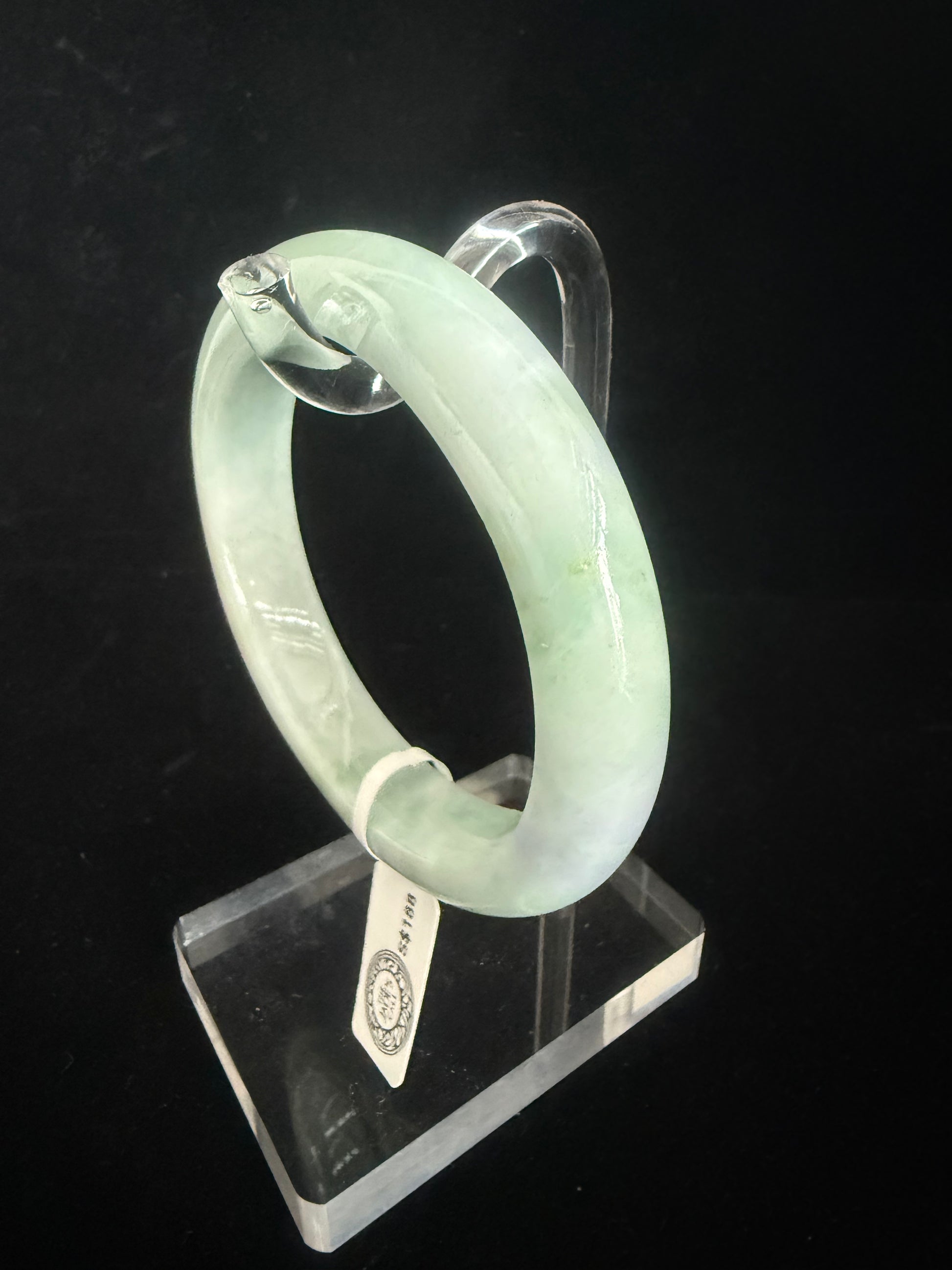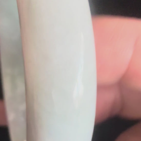 This jadeite bangle carries a rich green tone with a naturally textured pattern, accented by tiny pits that affirm its authenticity. The polish brings out the stone’s depth while allowing its raw character to remain visible. Distinctive and organic, it feels both grounded and elegant—an honest piece that reflects jade’s timeless harmony and vitality.