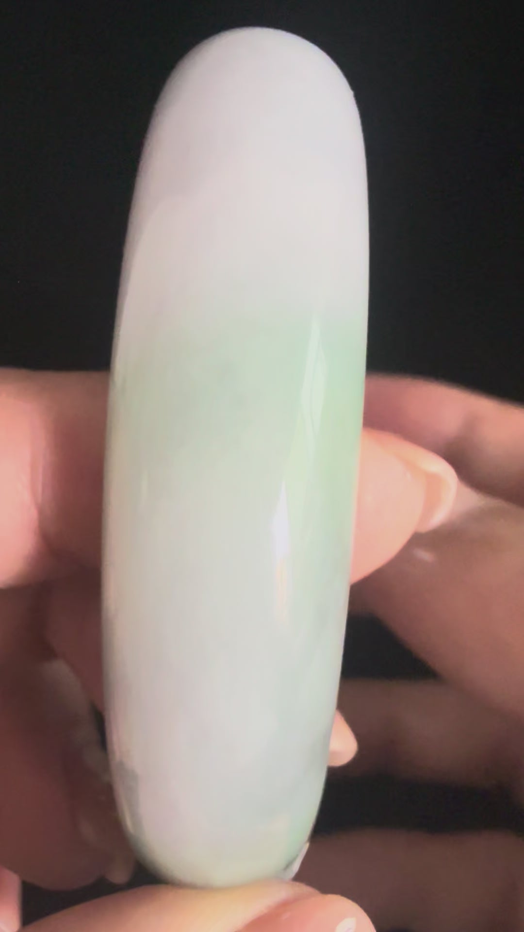 A mixed lavender and green jade bangle is a rare and harmonious fusion of serenity and vitality. The soft lavender hue—gentle and dreamlike—evokes calm, introspection, and spiritual grace, while the green brings a refreshing energy, symbolizing renewal and harmony. These two tones may swirl, drift, or merge across the stone like twilight meeting spring, creating a visual symphony of balance and beauty. Smoothly polished, the bangle feels serene and luminous, ideal for someone drawn to quiet elegance with a touch of soulful vibrance.