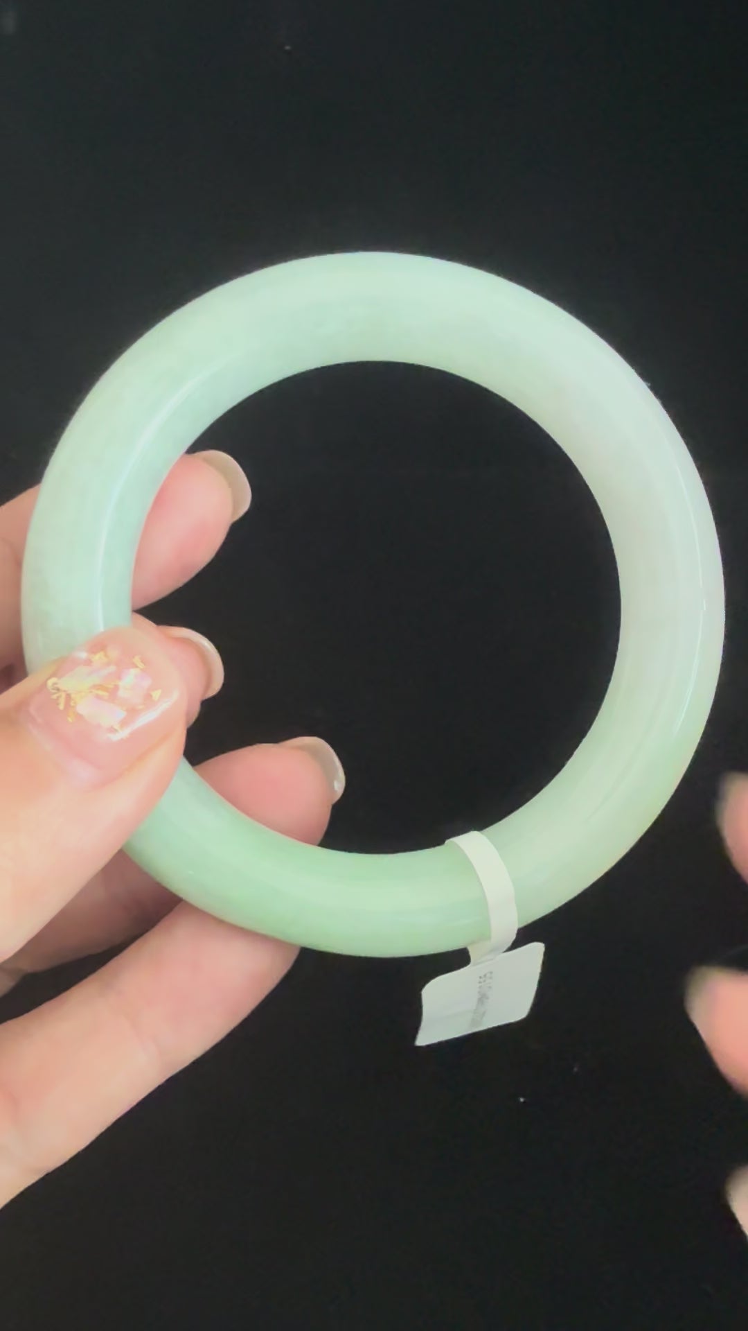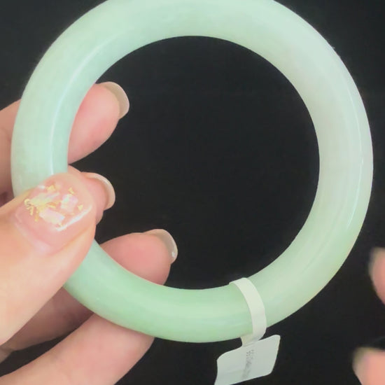 This traditional round jadeite bangle showcases a graceful gradient of color, transitioning from translucent white to a gentle light green with natural fluidity. The green emerges softly, deepening in intensity as it flows across the bangle’s surface like morning mist settling over spring leaves. Its smooth polish and classic silhouette highlight the purity of the white base while celebrating the quiet vitality of the green. A timeless piece that embodies harmony and renewal, ideal for those drawn to subtle elegance and the quiet strength of nature’s palette.