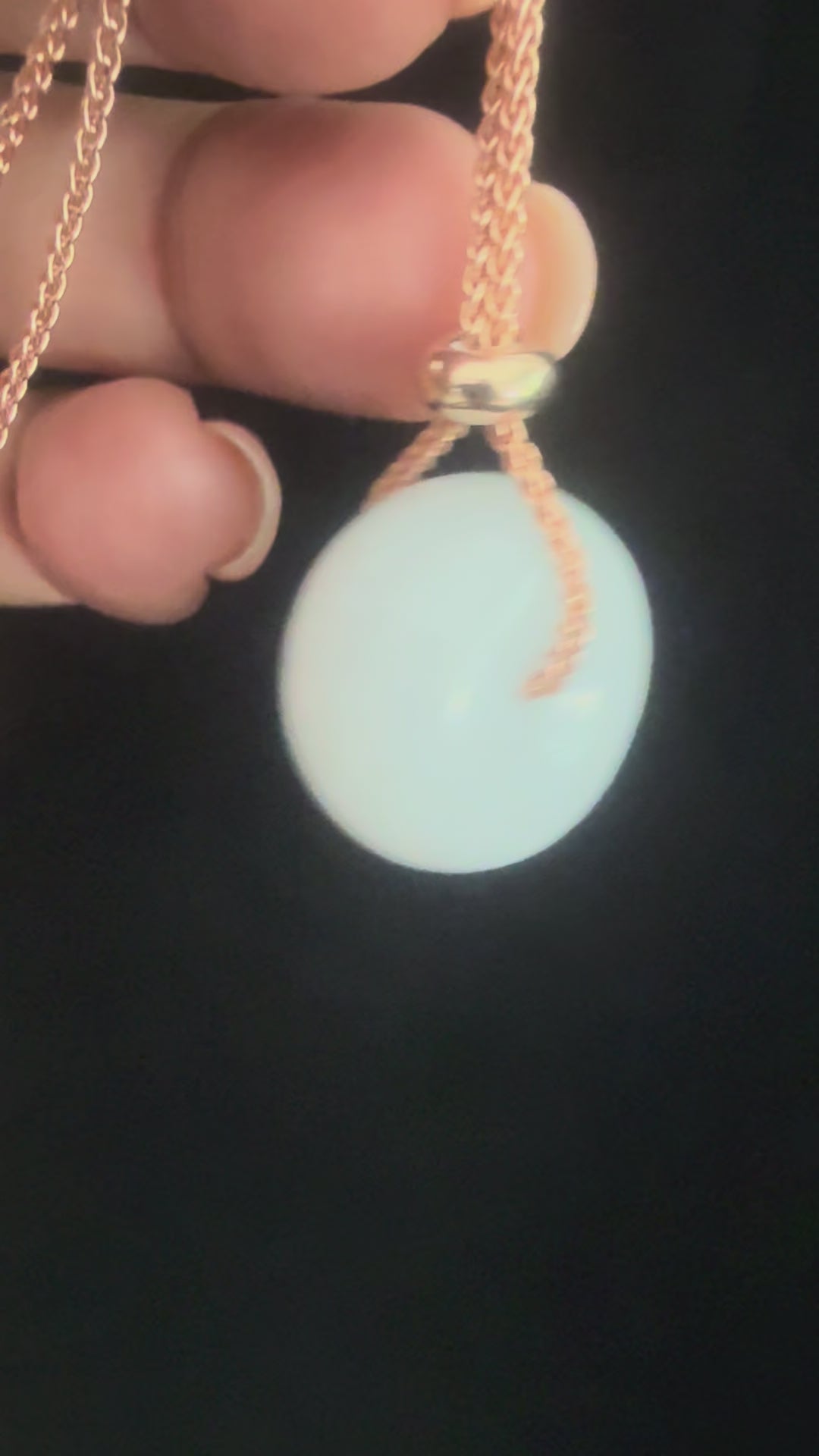 Jadeite meaty button pendant on 925 rose gold necklace.