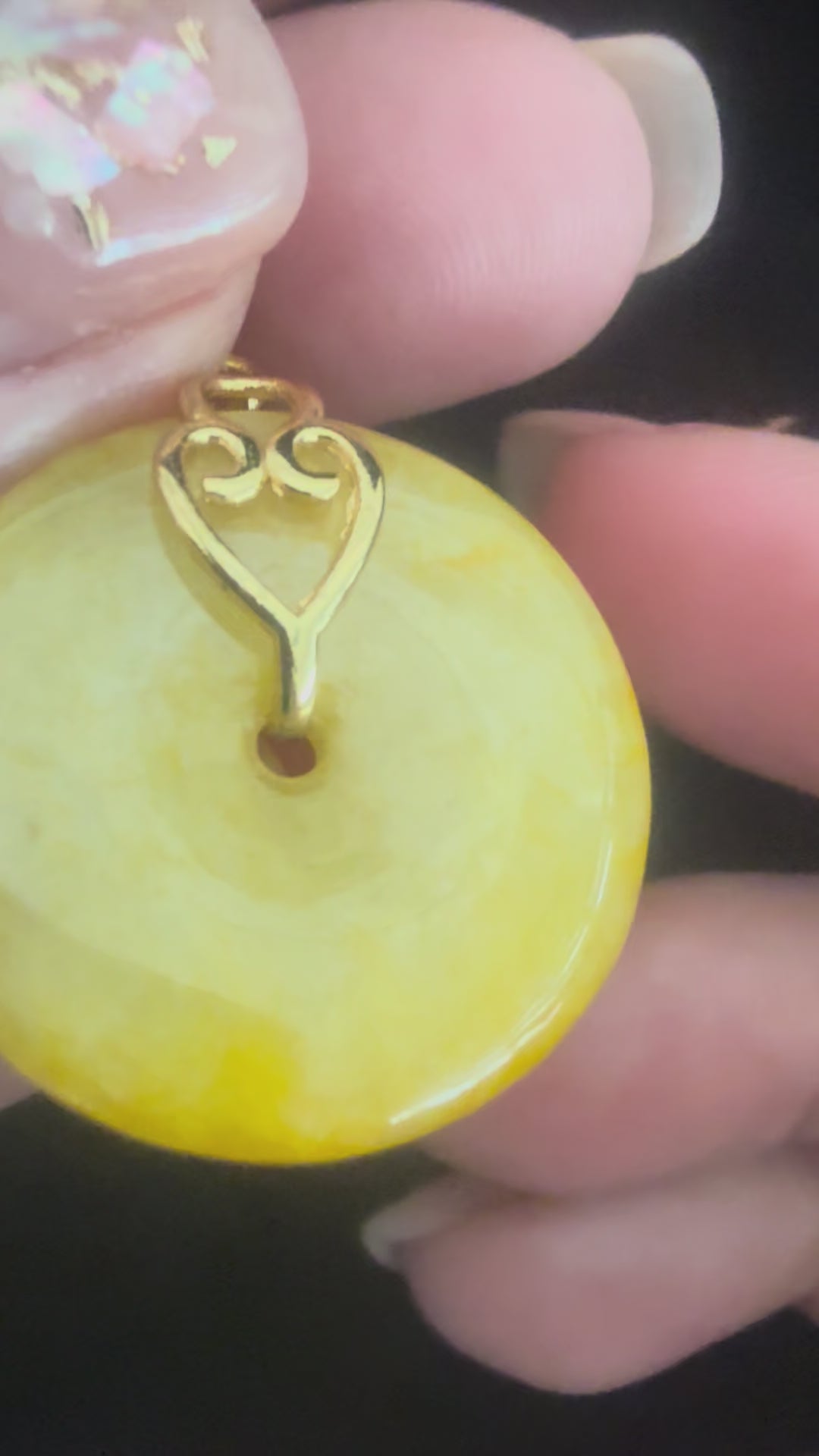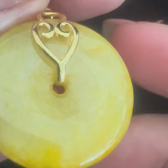 Jadeite pendant is naturally yellow and glossy; it symbolizes gold and attract wealth when wearing it.